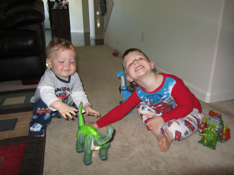 Cohen is as busy as ever! He wants to be doing anything that brother is doing. Trains, cars, and airplanes are his favorites. He is absolutely hilarious and keeps us on our toes. The sprinklers coming on in the evening are the highlight of his day. He will try to escape to the neighbor's yard to play in theirs after ours go off :)